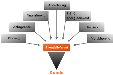 Das Energieliefer-Contracting bietet im Gegensatz zur Eigenenergieerzeugung den Vorteil, daß die Investition, Finanzierung und der Betrieb an Dritte übertragen werden und damit das wirtschaftliche Risiko beim Energiedienstleister liegt. Der Endkunde kauft die „fertige“ Nutzenergie z.B. Wärme